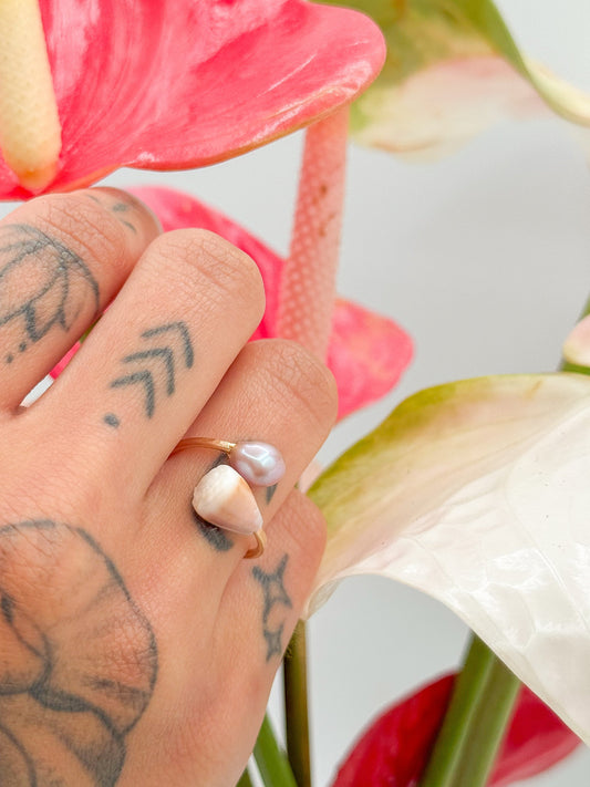 Sold outCONE X PINK PEARL BYPASS RING