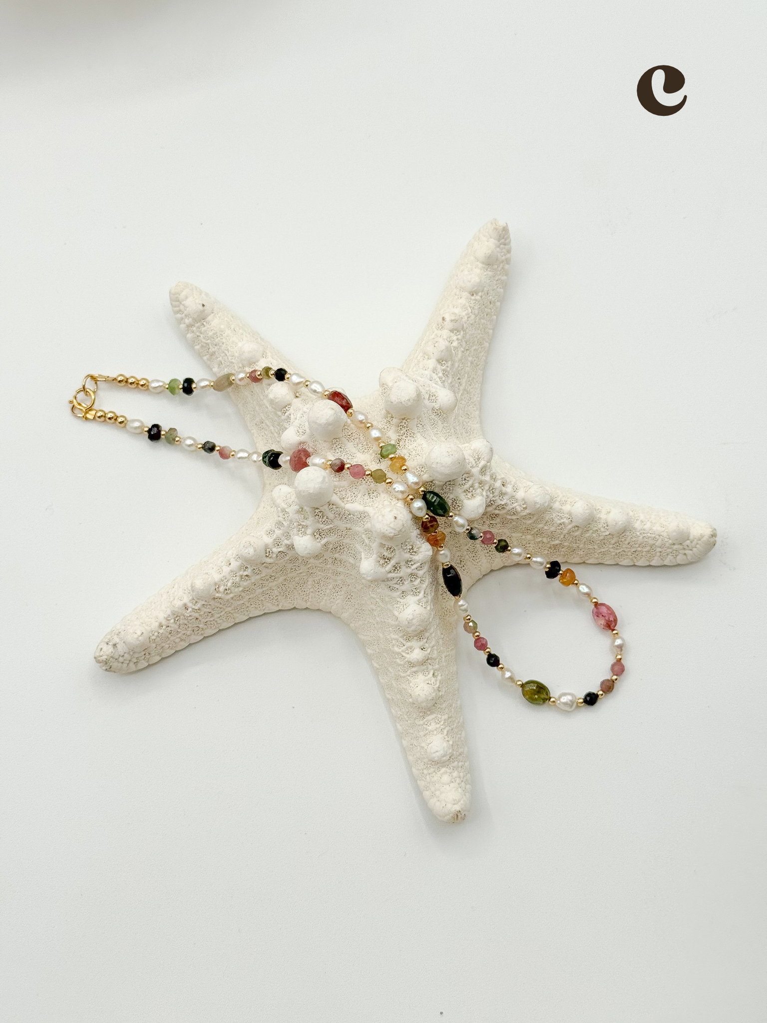 Hand-strung with Watermelon Tourmaline gemstones and white fresh water pearls